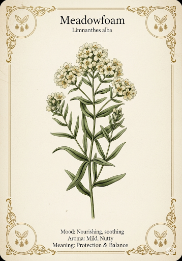 Historical/Cultural: Meadowfoam is a modern crop (developed in the 20th century) but ties into symbolic meanings of meadows as renewal and abundance in folklore. Its stability is due to rare fatty acids, making it valuable in modern natural cosmetics.